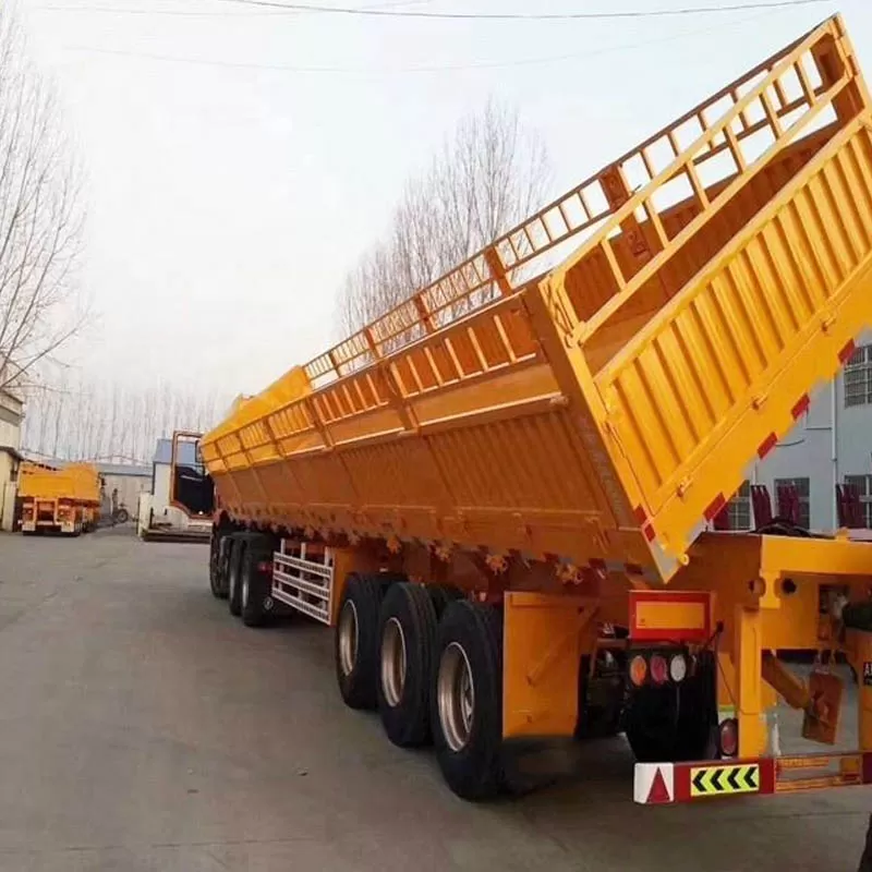 شاحنة قلابة جانبية ثلاثية المحاور، حمولة 30-50 طن، شاحنة قلابة شديدة التحمل، مقطورة قلابة نصفية