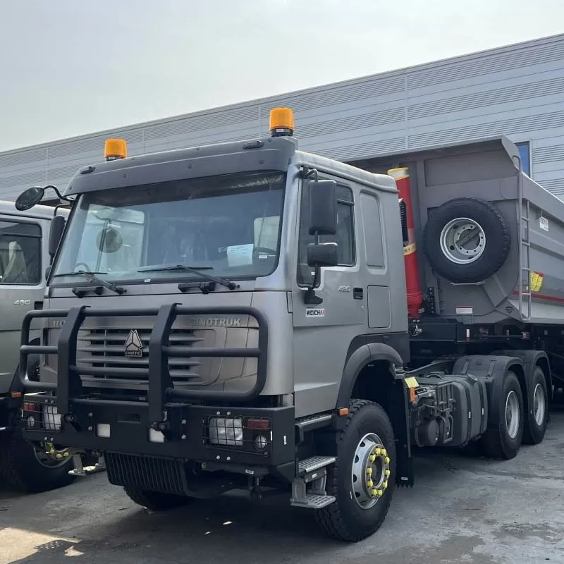 شاحنة قلابة ثقيلة من نوع Howo بثلاثة محاور مع مقطورة قلابة خلفية للبيع