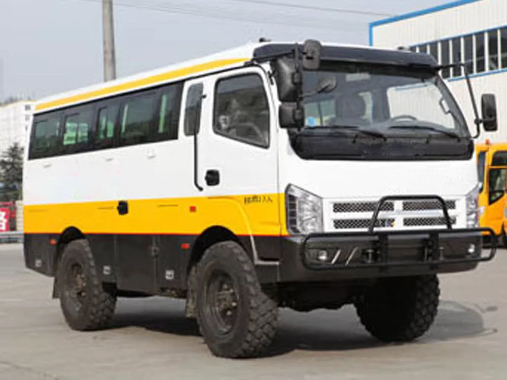 The Dongfeng Chaolong EQ6600ZTV Bus - A Hardcore Four-Wheel Drive All-Terrain Conqueror. As the Dongfeng Chaolong family's off-road model, designed specifically for complex road conditions, the EQ6600ZTV features a National V emission standard diesel engine and a part-time four-wheel drive system, providing a reliable mobility solution for specialized scenarios such as geological exploration, oilfield operations, and forest firefighting. Its flexible 10-17-seat layout accommodates both team transport and equipment carrying needs. Its compact 5990mm body and 22°/25° approach/departure angles make it easy to navigate challenging unpaved terrain such as the Gobi Desert and mountainous areas.