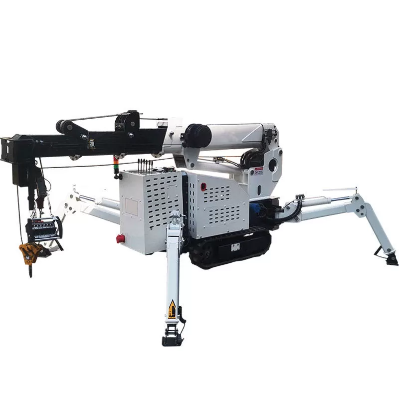 Spider cranes are compact and have a large load capacity, allowing them to lift in situations where conventional cranes cannot, such as in basements and workshops. They can also operate in environments where general machinery cannot access, such as rooftops, indoors, shopping malls, or crowded areas where tower cranes cannot operate. The miniature crawler spider crane offers easy and flexible operation in these situations.