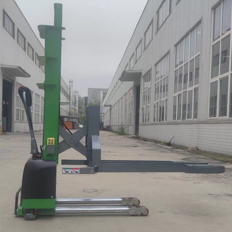 The electric self-elevating stacker crane can accommodate large containers and is remotely controlled.