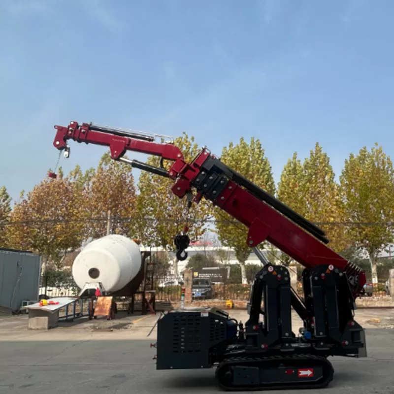 This 3-ton spider crane has a body width of only 800 mm, allowing it to pass through standard single doors for indoor work. Equipped with tracks, it can access narrow areas that large or specialized cranes cannot reach, making it an easy task for this spider crane.