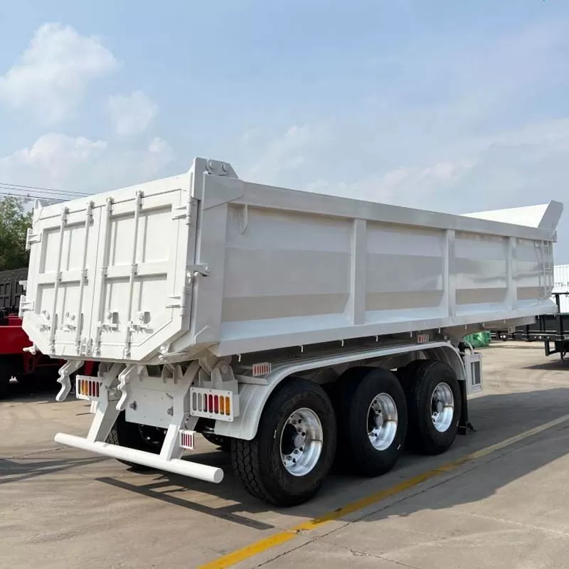 Este tipo de remolque autodescargable, también conocido como remolque de descarga trasera, funciona descargando la carga en la parte trasera del vehículo. Se utiliza comúnmente para transportar materiales sueltos como áridos, arena, grava y residuos de construcción, y se emplea en industrias como la construcción, la minería, la agricultura, la gestión de residuos, el paisajismo y la excavación.