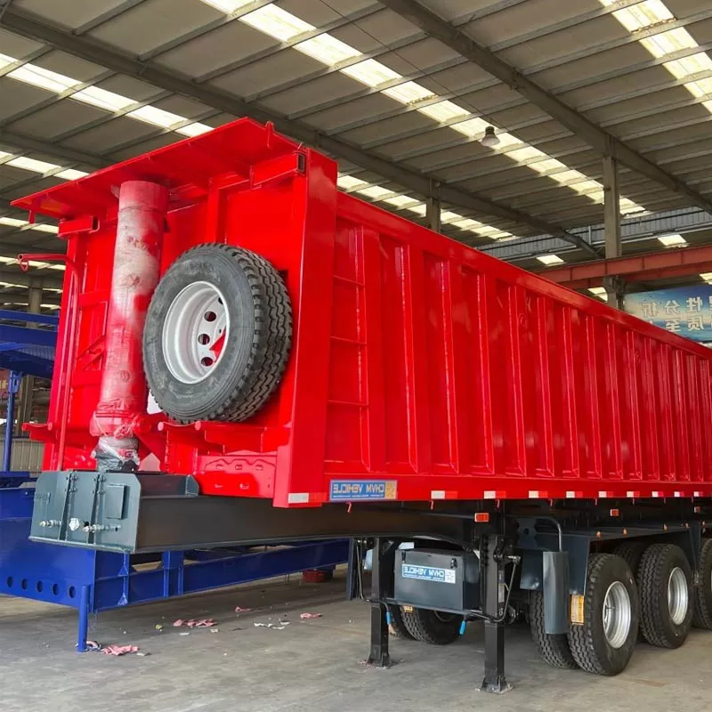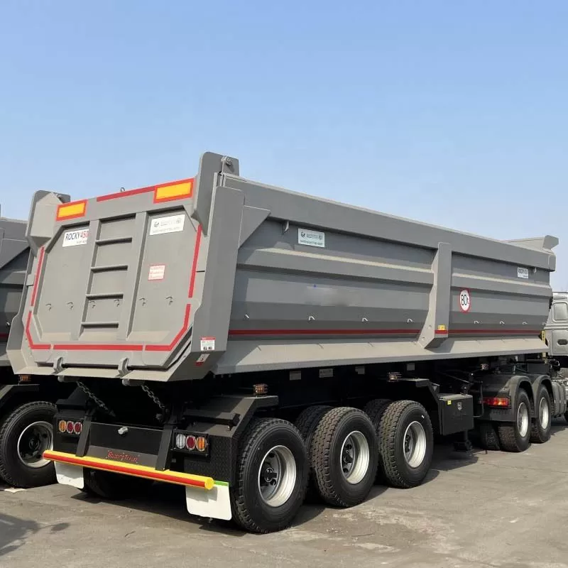 Este tipo de remolque autovolquete, también conocido como remolque autovolquete trasero, descarga la carga en la parte trasera del vehículo. Se utiliza comúnmente para transportar materiales sueltos como áridos, arena, grava y residuos de construcción, y se utiliza en industrias como la construcción, la minería, la agricultura, la gestión de residuos, el paisajismo y la excavación.