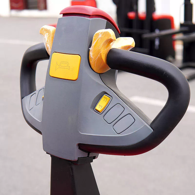 Como una nueva opción para operaciones de carga media de 1000 a 2000 kg, el transelevador eléctrico demuestra una excelente flexibilidad y practicidad en la manipulación de materiales y el transporte logístico gracias a su chasis compacto, diseño ligero y pequeño radio de giro. Su palanca de control inteligente multifuncional integra acelerador, botón de seguridad de reversa, palanca de liberación de caída y luz indicadora de encendido, permitiendo el cambio de modo cuando la palanca está en posición vertical, lo que hace que la operación sea cómoda y eficiente. El transelevador cuenta con un diseño de interruptor de llave integrado y está equipado con un botón de apagado de emergencia, que protege eficazmente el sistema eléctrico, ahorra energía y garantiza la seguridad en estados de inactividad.