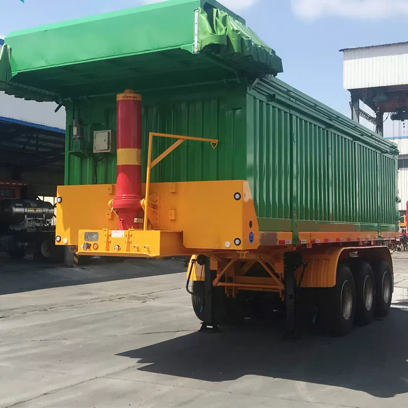 Este semirremolque volquete presenta un diseño de 3 ejes con suspensión neumática. Su carrocería compacta y elegante lo hace ideal para el transporte entre zonas urbanas y obras de construcción. La caja de carga utiliza una estructura de volquete trasero en forma de U y su longitud se puede personalizar. Está equipado con una lona eléctrica ecológica y puede satisfacer las necesidades de transporte de mercancías de diferentes tamaños.