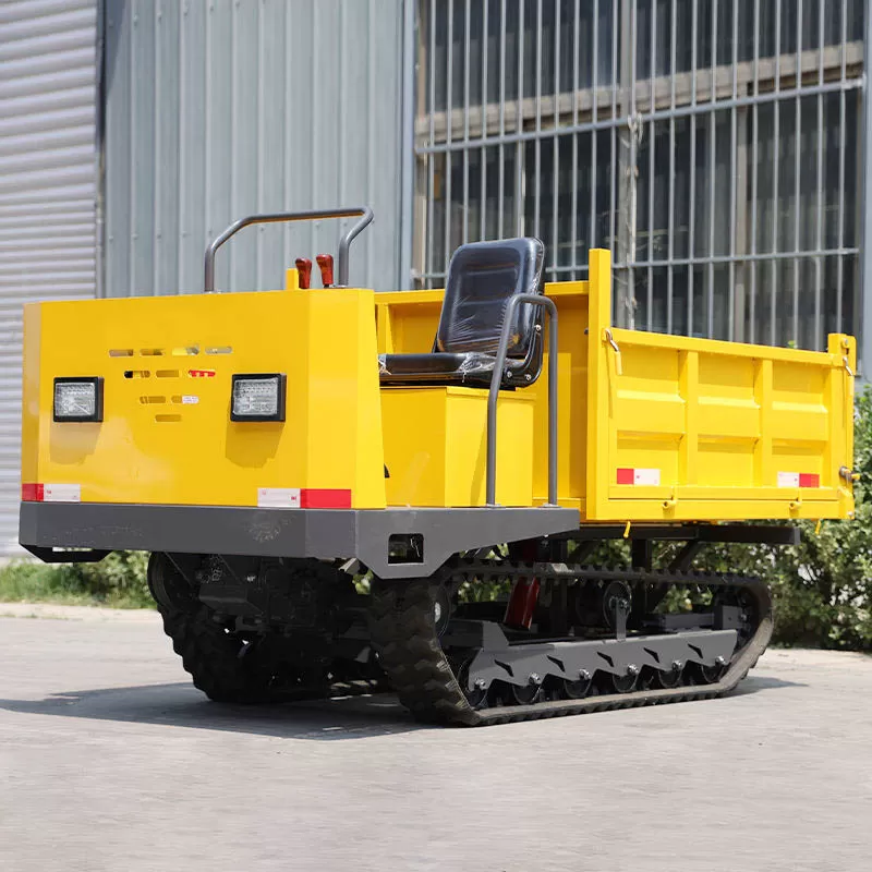 El mini camión volquete sobre orugas cuenta con una tolva especial que puede inclinar los materiales para el transporte a corta distancia. La carrocería está equipada con un contenedor tipo "cubo" que se puede volcar para facilitar la descarga. Ideal para el transporte a corta distancia de diversos materiales a granel como grava, tierra, carbón y minerales, generalmente cuenta con una función de retorno mecánico.